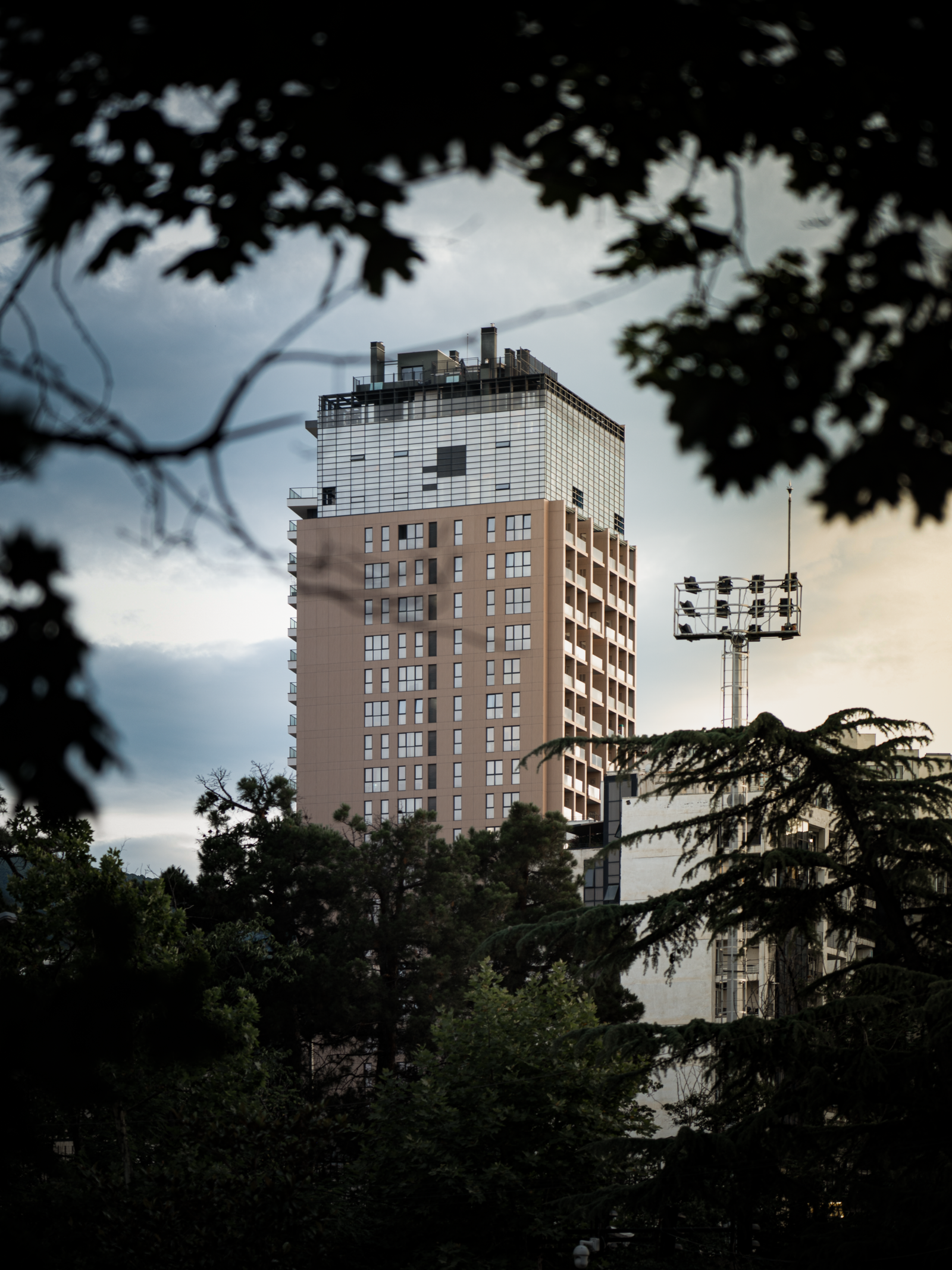 Orion is a 22-storey mixed-use tower located at the northwest corner of Vake Park, a nine-hectare public green space in the prestigious Vake district of Tbilisi. Positioned at one of the park’s most prominent urban edges, the building occupies a highly visible site where the openness of the landscape meets the dense structure of the city. This strategic location places Orion within an important recreational and cultural zone, surrounded by significant public amenities such as the Mikheil Meskhi Stadium and the Vake swimming pool, both of which contribute to the area’s lively civic character.