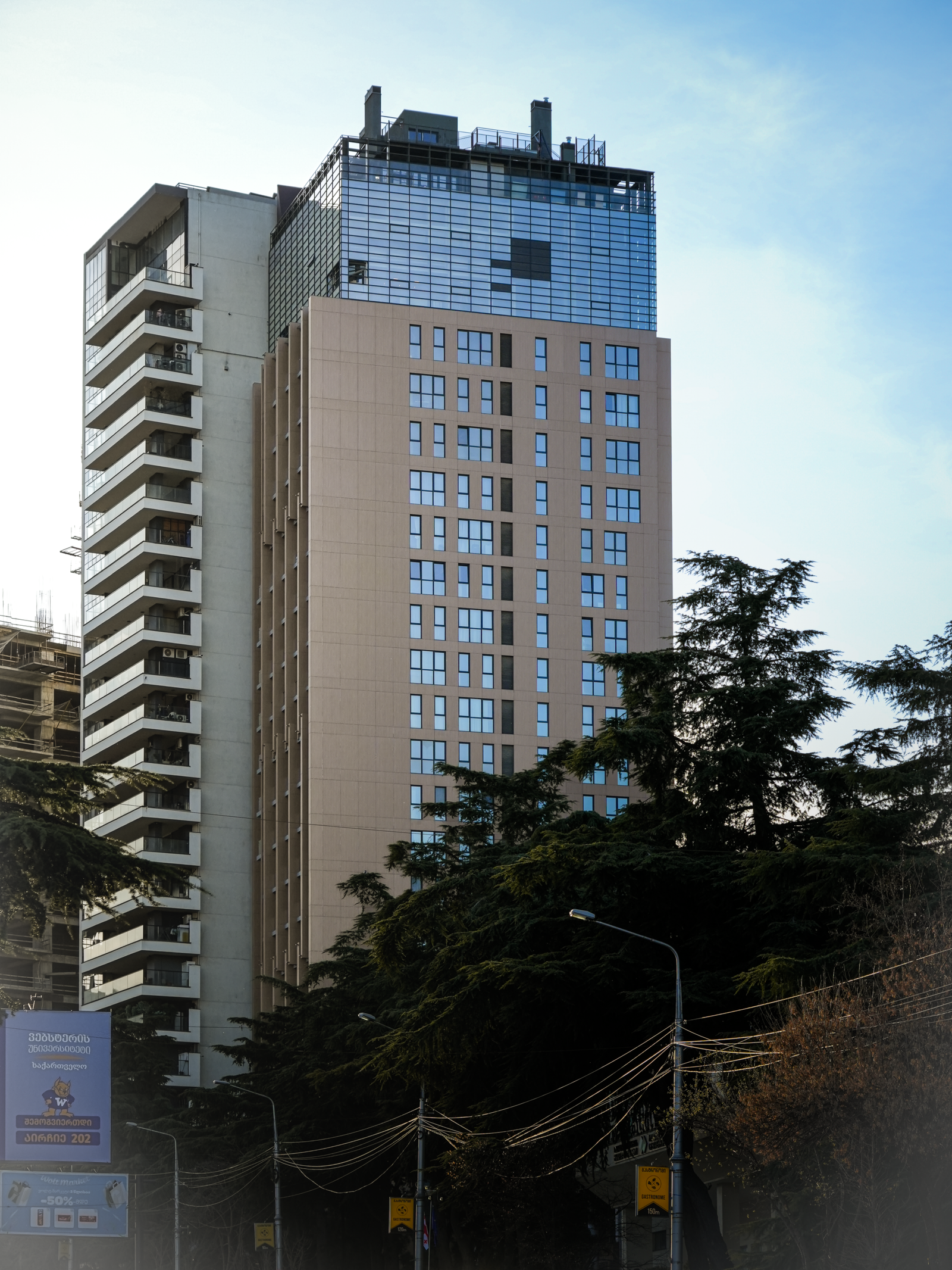 Ultimately, Orion represents a modern approach to high-rise development in Tbilisi—one that prioritizes contextual awareness, material durability, and architectural clarity. By choosing an enduring façade expression over a fully glazed typology, the tower achieves a balance between respecting the cultural and natural significance of Vake Park and confidently asserting its own place within the evolving skyline of the city.