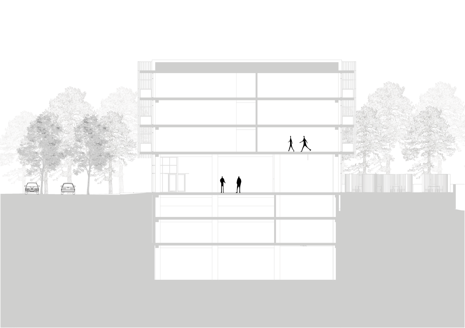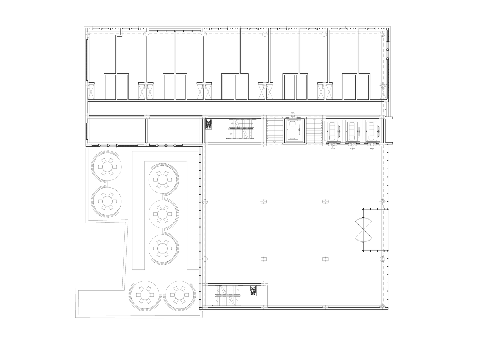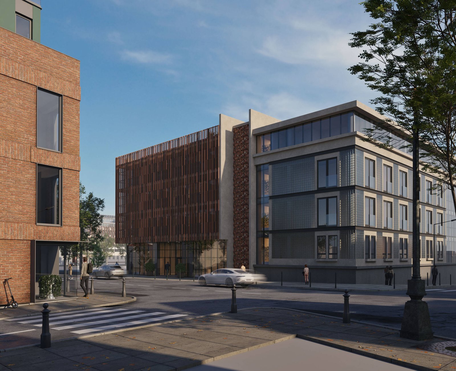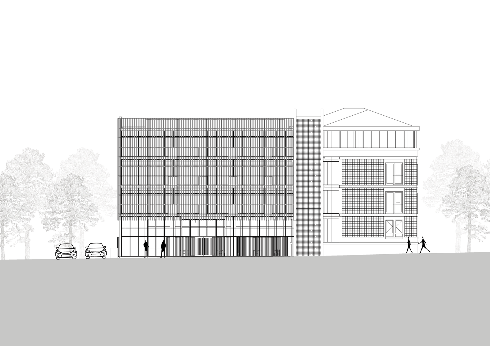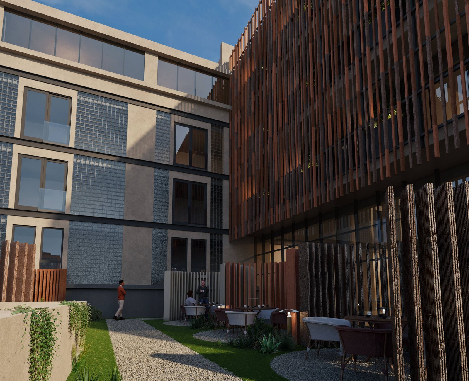 This segmentation also allows the building to establish a rhythm along its facades, maintaining a scale that relates to the surrounding historic structures. The architectural language of Hotel H-1 draws inspiration from the proportions and spatial organization of the district without resorting to direct imitation. In this way, the design pays homage to the historical context through continuity of form, alignment, and urban presence, while still expressing a contemporary identity appropriate for a modern hotel.